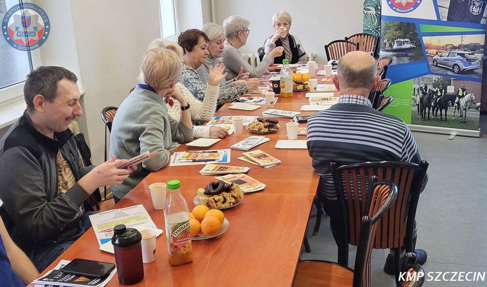 Policjantka z Komendy Miejskiej Policji w Szczecinie spotkała się z uczestnikami Polskiego Towarzystwa Walki z Kalectwem przy ul. Wielkopolskiej, aby porozmawiać o bezpieczeństwie w okresie przedświątecznym. Tematem przewodnim były oszustwa, bezpieczne zakupy oraz zasady poruszania się po drodze w sezonie jesienno-zimowym.
