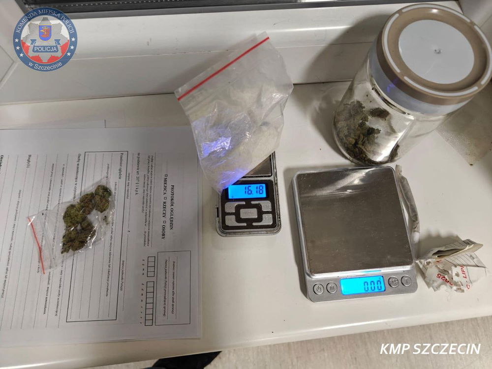 Policjanci z Wydziału Wywiadowczego Komendy Miejskiej Policji w Szczecinie realizowali czynności po informacji o możliwym rozprowadzaniu środków odurzających w budynku. Na klatce schodowej napotkali 19-letniego mężczyznę, który po krótkiej rozmowie wręczył jednemu z funkcjonariuszy woreczek z zielonym suszem.