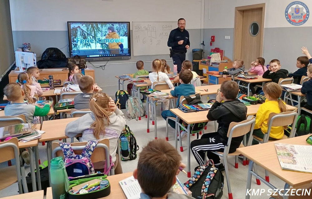 W ramach działań prewencyjno-edukacyjnych „Bezpieczne Ferie Zimowe 2026” oraz „Kręci Mnie Bezpieczeństwo w Zimie” funkcjonariusze Wydziału Prewencji Komendy Miejskiej Policji w Szczecinie oraz policjant z Komisariatu Policji Śródmieście odwiedzili Szkołę Podstawową nr 51 im. prof. Stanisława Helsztyńskiego i Szkołę Podstawową nr 61 na ul. 3 Maja.