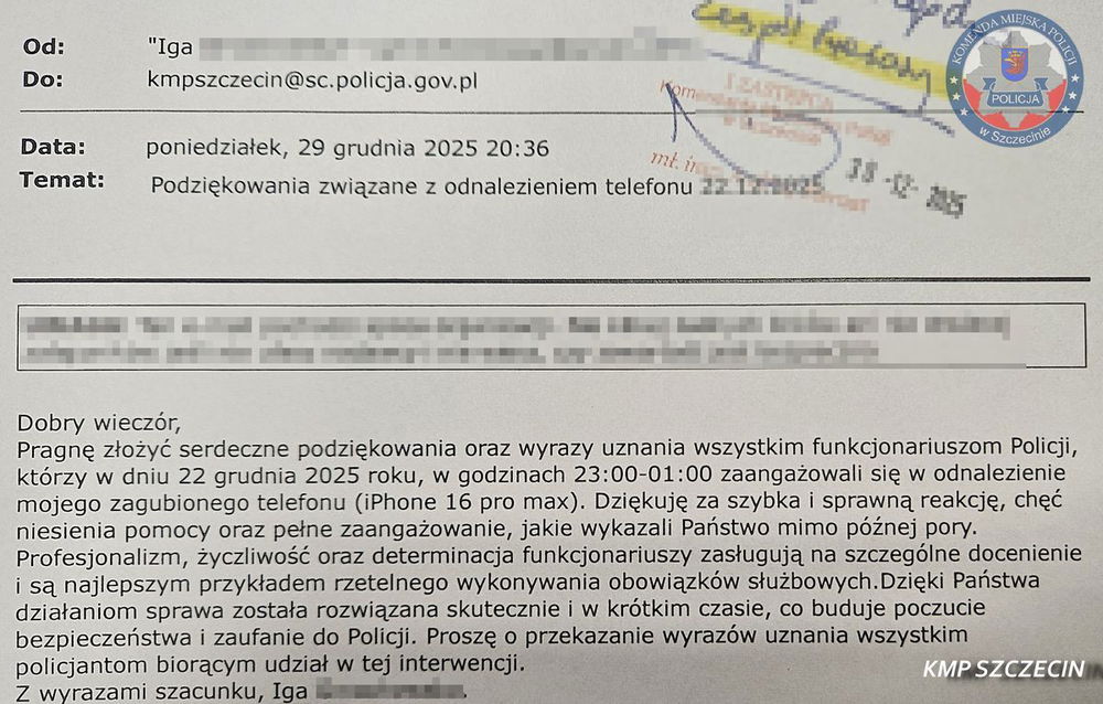 „Dziękuję policjantom za szybkie działania i profesjonalizm” - właścicielka telefonu