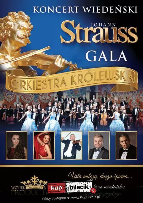 Orkiestrze towarzyszyć będą znakomici soliści międzynarodowych scen. Artyści przeniosą słuchaczy do ojczyzny walca prezentując niezwykły kunszt wokalny i instrumentalny. Wśród solistów usłyszą Państwo znakomitą polską sopranistkę Roksanę Majchrowską solistkę Opery Śląskiej w Bytomiu. Joanna Iwaszkiewicz mezzosopran, absolwentka Akademii Muzycznej w Katowicach jest laureatką wielu prestiżowych międzynarodowych konkursów wokalnych. Jej niezwykły głos, muzykalność jak i wyjątkowe interpretacje przeniosą słuchaczy w czasy Johanna Straussa. Tenor Dawid Kwieciński - zwycięzca wielu międzynarodowych konkursów wokalnych. Tenor liryczny. Solista Teatru Wielkiego w Łodzi. W Lutym 2018 roku rozpoczął współpracę z Operą Nova w Bydgoszczy oraz z Operą Bałtycką w Gdańsku. To niezaprzeczalnie światowa barwa tenora, który zachwyca każdą publiczność. Włodzimierz Shagay - baryton. Absolwent Państwowej Akademii Muzycznej w Odessie jest zwycięzcą krajowych i międzynarodowych konkursów wokalnych. Artysta jest wieloletnim solistą Tarnopolskiej Filharmonii oraz gościnnym solistą Lwowskiej Filharmonii Narodowej. Artysta aktywnie koncertuje w wielu krajach Europy i bierze udział w międzynarodowych projektach muzycznych. Ta niezwykła gala będzie wzbogacona wirtuozerskim tańcem par tanecznych, barwnymi kreacjami i bogatą choreografią, co pozwoli na doświadczenie wielu doznań artystycznych w iście książęcym stylu. Pary taneczne to soliści Narodowego Teatru Opery i Baletu we Lwowie. W ten magiczny wieczór zabrzmią największe przeboje Króla walca Johanna Straussa takie jak uwertura z Zemsty Nietoperza, Keiser Marsz, Marsz Radecki, walc Nad pięknym modrym Dunajem, Wiedeńska krew, czy Odgłosy wiosny, Róże Południa a także polki Trich Trasch, Eljen Magiar Polka, Anne Polka, Polka z kowadłem, Gromy i Błyskawice i wiele innych orkiestrowych szlagierów. Nie zabraknie także popisowych arii i duetów z najsłynniejszych operetek: Zemsty Nietoperza, Barona Cygańskiego, Księżniczki Czardasza, Hrabiny Maricy, Wesołej Wdówki czy Krainy Uśmiechu. Publiczność wysłucha między innymi: arie "Adeli", "Kuplety Orlowskiego", arię "Olimpii", "Czardasz Sylvi", kuplety Barinkaya "Wielka sława to żart", "Graj Cyganie", " Artystki z variete", "Ach jam pocałunki kradł", pieśń " Boniego", przebój Jana Kiepury "Brunetki Blondynki R. Stolza" a także duety wszechczasów, m.in. "Usta milczą dusza śpiewa", "Jakże mam Ci wytłumaczyć", " Jedź do Verasdin", zachwycające zarówno poddanych Franciszka Józefa jak i współczesną publiczność. Nie zabraknie także sztandarowych pieśni neapolitańskich takich jak: "O sole mio", "Funikuli-Funikula", "O Surdato N"namurato", "Mamma son tanto felice" oraz wiele innych muzycznych niespodzianek.