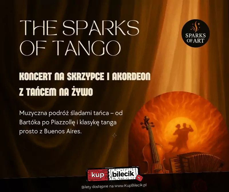 bilety: "The Sparks of Tango" - Iskry Tanga. The Sparks of Tango artyści: Ewa Podgórska, Michał DąbrowskiZapraszamy na koncert, który rozpala ogień w sercu i wywołuje ciarki od pierwszego dźwięku. To historia tańca pełna emocji i kontrastów - dzikości, elegancji, zmysłowości i buntu - opowiedziana przez skrzypce i akordeon. Od natchnionych rytmów rumuńskich tańców Béli Bartóka, przez przewrotny humor Alfreda Schnittkiego, aż po głęboką namiętność argentyńskiego tanga nuevo - Astora Piazzolli. W programie znajdą się także klasyki argentyńskiego tanga - "La Cumparsita", "El Choclo" i "Jealousy", które od lat poruszają serca słuchaczy na całym świecie. To koncert, który łączy ze sobą tradycję i współczesność, dzikość i subtelność, ekspresję i refleksję. To więcej niż muzyka - to iskry, które rozpalają emocje. Bilety do nabycia na: KupBilecik.pl |
