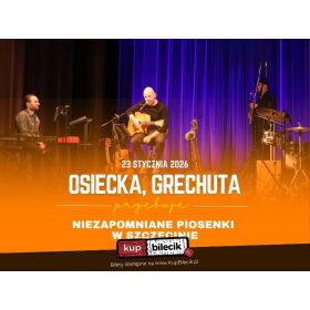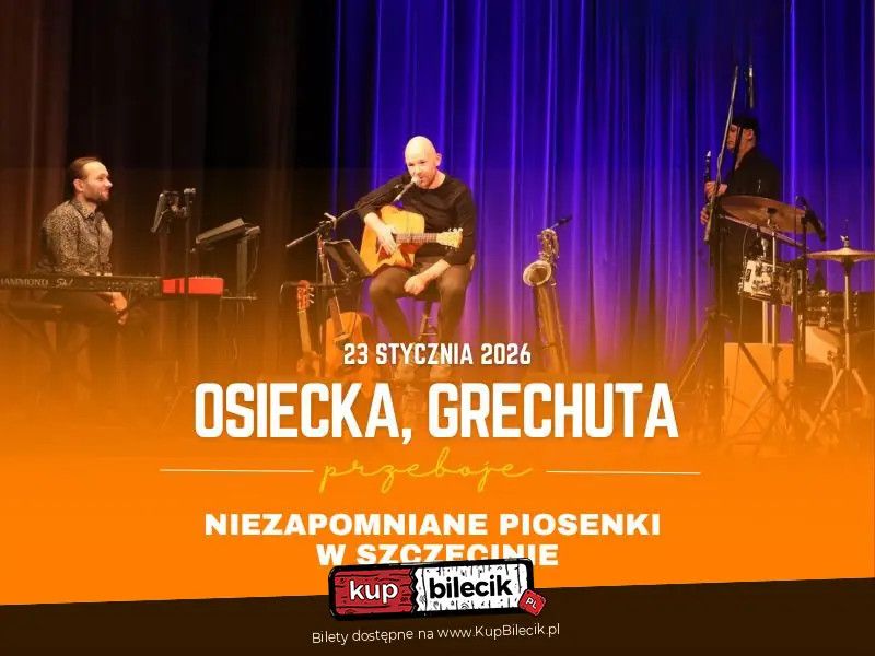 bilety: Zapraszamy na koncert poświęcony twórczości Agnieszki Osieckiej oraz Marka Grechuty. W programie znajdą się najwybitniejsze, najbardziej znane piosenki napisane przez Agnieszkę Osiecką: m.in. "Piosenka o okularnikach", "Niech żyje bal", "Kołysanka dla okruszka", "Kiedy mnie już nie będzie", "Co każdy chłopiec wiedzieć powinien oraz Wybitne utwory wykonywane przez Marka Grechutę: "W dzikie wino zaplątani", "Niepewność", "Historia jednej podróży", "Korowód", "Świat w obłokach", "Dni których nie znamy" oraz wiele innych. Tomasz Steńczyk z zespołem - wokalista, gitarzysta, kompozytor. Zdobywca głównych nagród najważniejszych festiwali piosenki artystycznej, razem z wybitnymi muzykami, tworzy nową, pełną wdzięku, urzekającą muzyczną ucztę. Jest artystą, który nie boi się śpiewać trudnych tekstów. Na nowo odkryjemy znane utwory, które dzięki aranżacjom Steńczyka i jego zespołu wchodzą w inne klimaty - czasem nieco aktorskie, a miejscami wręcz poetycko. Steńczyk potrafi uwalniać emocje, udowadnia to z zespołem na każdym koncercie. Koncertowali na wielu znaczących scenach tj. Teatr Roma w Warszawie, Teatr Krasickiego w Krakowie, Piwnica pod Baranami, Teatr Atelier w Sopocie, CK ICE Kraków, Studio Polskiego Radia im. A. Osieckiej. Artyści byli wielokrotnie nagradzani na Festiwalach "Pamiętajmy o Osieckiej" w Warszawie, Festiwalu Twórczości "Korowód" w Krakowie, na Spotkaniach Zamkowych "Śpiewajmy poezję" w Olsztynie oraz Festiwalu "Grechuta Festiwal" w Krakowie. To będzie niezapomniany wieczór pełen wspomnień, uśmiechu, wzruszeń. Tego koncertu nie można przegapić. Bilety do nabycia na: KupBilecik.plOsiecka, Grechuta - niezapomniane piosenki artyści: Tomasz SteńczykTomasz Steńczyk - wokalista, gitarzysta, kompozytor. Zdobywca głównych nagród najważniejszych festiwali piosenki artystycznej, razem z wybitnymi muzykami, tworzy nową, pełną wdzięku, urzekającą muzyczną ucztę. Jest artystą, który nie boi się śpiewać trudnych tekstów. Na nowo odkryjemy znane utwory Agnieszki Osieckiej, które dzięki aranżacjom Steńczyka wchodzą w inne klimaty - czasem nieco aktorskie, a miejscami wręcz poetycko. Steńczyk potrafi uwalniać emocje, udowadnia to na każdym koncercie. Bilety do nabycia na: KupBilecik.pl |