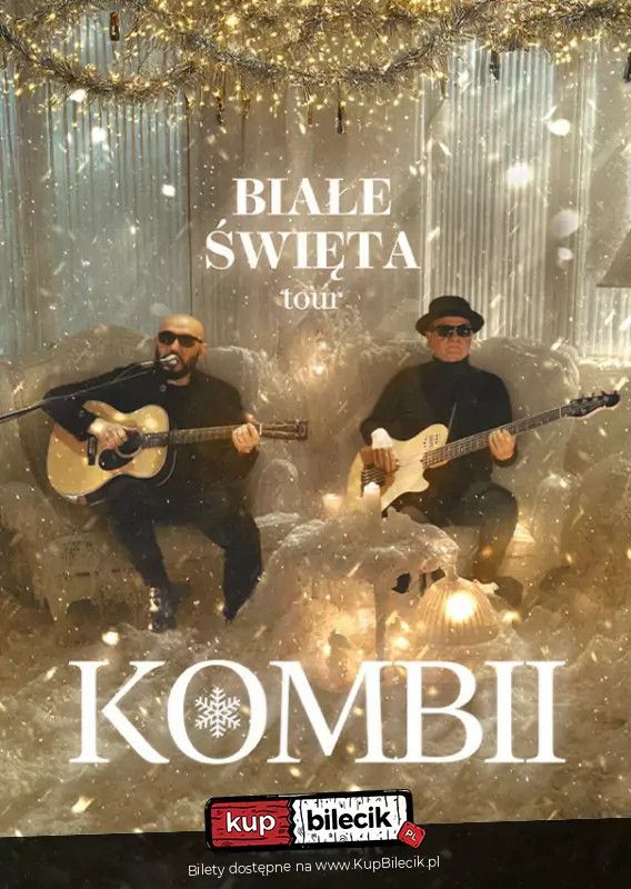 bilety: W programie usłyszysz zimowe standardy i świąteczne piosenki w świeżych, elektroniczno-popowych aranżacjach oraz największe hity formacji, m.in. "Pokolenie", "Nasze randez-vous", "Black and White" i wiele innych. Każdy numer zagrany tak, by rozgrzać publiczność - od pierwszego dźwięku po ostatni bis. Kombii artyści: Grzegorz Skawiński, Waldemar TkaczykZespół Kombii powstał wiosną 2003 roku z inicjatywy trzech członków zespołu KOMBI: Grzegorza Skawińskiego, Waldemara Tkaczyka oraz Jana Pluty. Z różnych przyczyn nie został zaproszony do współpracy Sławomir Łosowski (czwarty założyciel Kombi). Dwa miesiące pracy zespołu zaowocowały nowym programem opartym na znanych przebojach, takich jak: "Linia życia", "Hotel twoich snów", "Nasze randez-vous", "Kochać cię za późno", "Nie ma zysku", "Black and white" w nowych aranżacjach. Bilety do nabycia na: KupBilecik.pl |