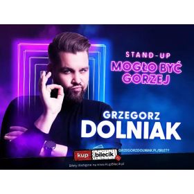 bilety: Najnowszy stand-up Grzegorza Dolniaka to komediowa podróż od zawalonej rzeczami komórki lokatorskiej, przez agresywną jazdę Skodą Citigo, fish spa, chmury w kształcie psów, marzenia o komputerze stacjonarnym, aż po podwyższony cholesterol, podczas której Grzegorz z charakterystyczną dla siebie ekspresją udowodni Wam, że zawsze mogło być gorzej. * Podczas występu obowiązuje zakaz nagrywania audio oraz video. * Osoby przeszkadzające mogą zostać wyproszone bez możliwości zwrotu biletów. * Nie ma konieczności drukowania biletów, mogą one zostać przedstawione w formie elektronicznej. * Pojawienie się na wydarzeniu po planowanej godzinie startu oznacza brak gwarancji numeru miejsca z biletu. Można będzie zająć miejsce wskazane przez obsługę lub dowolne wolne miejsce na sali. Bilety do nabycia na: KupBilecik.plGrzegorz Dolniak stand-up artyści: Grzegorz DolniakGrzegorz Dolniak – komik, konferansjer, prezenter telewizyjny, producent wydarzeń artystycznych. Od kilkunastu lat związany ze sceną i estradą. Swoje pierwsze kroki stawiał w kabarecie zdobywając najwyższe laury na wszystkich znaczących festiwalach w kraju. Od 2013 roku poświęcił się karierze solowej – najpierw jako dziennikarz i prezenter telewizyjny, a od 2016 roku z powodzeniem zajmując się stand-upem. Na swoim koncie posiada cztery programy komediowe: Klamka zapadła, Flashback, Termin przydatności oraz Sztuka relaksu Jego stand-up to mieszanka scenicznej charyzmy popartej wieloletnim doświadczeniem, niespożyta energia przekładająca się na charakterystyczną ekspresję i cała masa humoru obserwacyjnego wbijającego szpilę w absurdy otaczającego nas świata. Bilety do nabycia na: KupBilecik.pl |