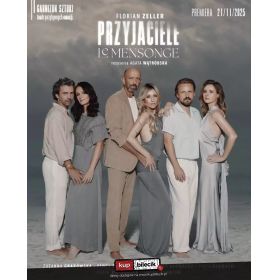 PRZYJACIELE / Le Mensonge to brawurowo napisany, trzymający w napięciu tekst, w którym każdy może się przejrzeć jak w lustrze. To wyjątkowe lustro, bo na scenie zobaczymy... prawdziwe pary małżeńskie. Agata Wątróbska i Janusz Chabior, Zuzanna Grabowska i Paweł Domagała / Agnieszka Głowacka i Piotr Głowacki. Trzy aktorskie duety, które łączy nie tylko praca, ale i życie prywatne. Ich relacje, ich wspólne doświadczenia mieszają się z emocjami bohaterów opowieści, nadając spektaklowi intensywności, której nie da się wyreżyserować. Każde spojrzenie, dotyk, niedomówienie, nabierają wyjątkowego znaczenia.