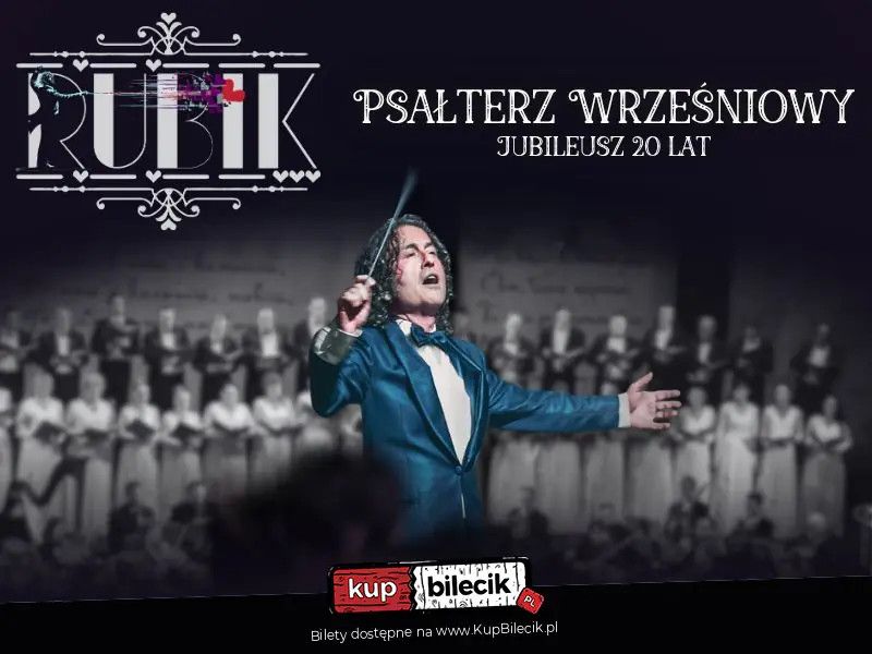 bilety: Zanurz się w niezwykłym świecie muzyki i emocji podczas jubileuszowego koncertu Piotra Rubika, z okazji 20-lecia powstania oratorium "Psałterz wrześniowy" - dzieła, które na trwałe zapisało się w historii polskiej muzyki współczesnej. Zabrzmią na nowo utwory do poruszających tekstów Zbigniewa Książka - pełne zadumy, nadziei i duchowej refleksji. Oratorium, które od premiery w 2006 roku wzruszyło setki tysięcy słuchaczy, powraca w wyjątkowej, jubileuszowej odsłonie z ponad 100 osobami na scenie. Na scenie wystąpią: Piotr Rubik artyści: Piotr RubikPolski kompozytor muzyki pop, filmowej i teatralnej, producent muzyczny oraz prezenter telewizyjny. Podstawy wiedzy o muzyce zdobywał pod okiem Elżbiety Małanicz-Onoszko[potrzebny przypis]. W wieku siedmiu lat zaczął się uczyć grać na wiolonczeli w klasie Jerzego Ługiewicza. Po ukończeniu tej szkoły dostał się do liceum muzycznego, gdzie kontynuował naukę gry na wiolonczeli pod kierownictwem prof. Andrzeja Zielińskiego, który prowadził go do ukończenia Akademii Muzycznej im. Fryderyka Chopina w Warszawie. Był członkiem Światowej Orkiestry Jeunesses Musicales, w której pełnił rolę koncertmistrza. Uczęszczał na kursy kompozycji muzyki filmowej w Sienie, prowadzone przez Ennio Morricone. Bilety do nabycia na: KupBilecik.pl |